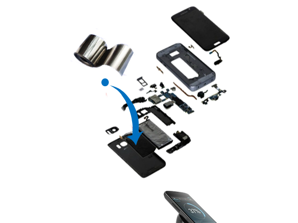 Combined with the antenna located in the Smart Phone receiver (Rx), it minimizes the loss current of the alternating magnetic field transmitted from the transmitter Tx through the excellent permeability performance. The magnetic substance of the thin film which maximizes the charging efficiency.