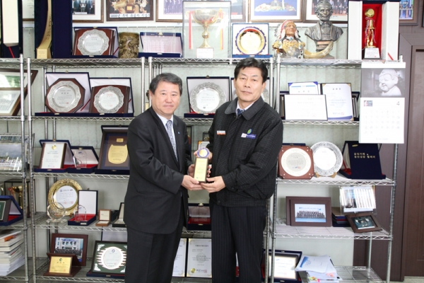 2012년 4월 3일 IBK기업은행 부은행장님이 당사를 방문하여 감사패를 수여받았습니다.