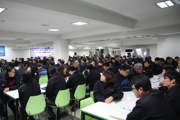 당사는 2017년 2월 3일(금) 본사 강당에서 '2017년 경영방침 설명회'를 개최하였습니다. 이번 설명회에서는 2016년 경영실적과 2017년 경영목표 및 경영방침에 관하여 이상원 대표이사가 직접 전 임직원을 대상으로 설명회를 진행하였습니다.
