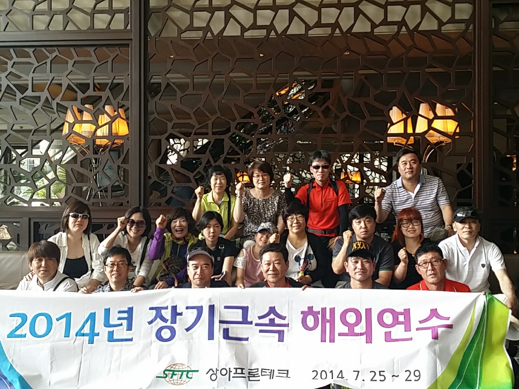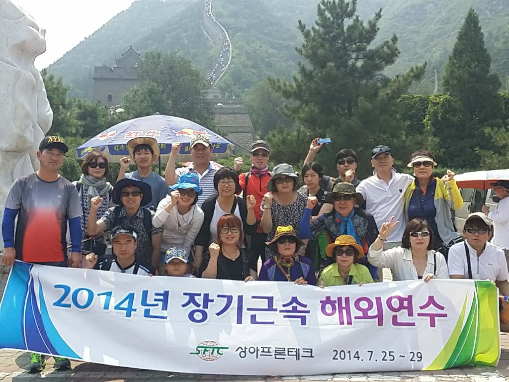 제6회 장기근속자 가족동반 해외연수 실시 당사는 2014년 7월25일~29일 4박5일간의 일정으로 20년이상 회사를 위해 최선의 노력을 다해주신 장기근속자와 가족을 동반하여 해외연수를 진행하였습니다. 장기근속자 해외연수는 2008년부터 20년이상 장기근속자를 대상으로 시행해왔으며 2014년은 해외연수 6회차로 AM사업부 이상만 이사 등 9명의 임직원을 포함하여 총 23명이 해외연수를 실시하였습니다. 이번 해외연수는 중국에 있는 북경과, 백두산등의 문화탐방 일정으로 회사의 임직원 및 가족들이 중국의 다양한 문화체험을 경험할수 있도록 프로그램을 구성하여 해외연수를 진행하였습니다.