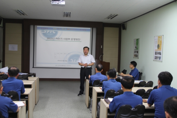 당사는 2013년 8월 8월 임원과 팀장급 이상이 참석한 가운데 사업부제 개편으로 인한 하반기 사업부별 경영전략 및 운영계획 보고회를 실시하였습니다. 이번 보고회에서는 경영목표 달성을 위한 각 사업부별 경영전략 수립 내용을 중점으로하여 사업본부 , SB사업부, OA사업부, AM사업부, DP사업부, SS사업부, EM사업부, MD사업부 순으로 사업부장이 직접 발표를 진행하였습니다.