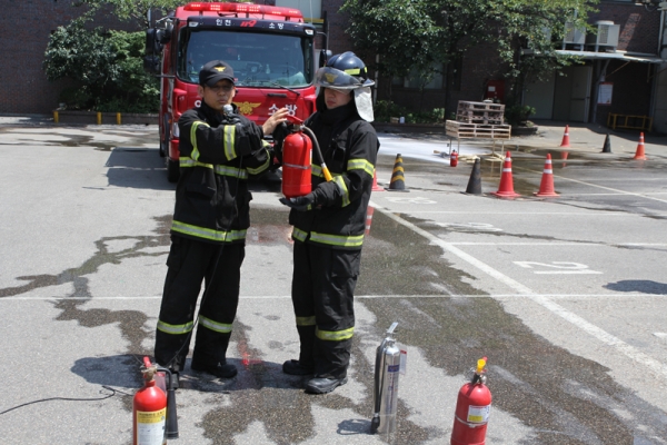 또한 도림119안전센터 소방대원분들의 소화기 위력시범과 소화기 사용법에 관한 설명을 들었습니다. |