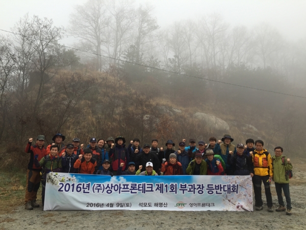 당사는 2016년 4월9일(토) 강화군 석모도 해명산에서 2016년 제1회 부과장 등반대회'를 실시하였습니다. 이번 등반대회는 임원 및 부과장 직급을 대상으로 석모도 해명산의 전득이 고개를 출발하여 보문사까지 약5시간정도의 종주코스에서 진행되었습니다. 부과장 등반대회는 부과장협의회의 주관으로 회사의 핵심역량인 부과장 직급의 단합과 심신단련을 위하여 2015년을 시작으로 2016년부터 분기 단위로 진행되고 있습니다. 당사는 부과장 등반대회 활동외에 각 직급별로 최선의 노력을 다하여 첨단 부품/소재 글로벌 기업으로 거듭나도록 최선의 노력을 다하겠습니다. |