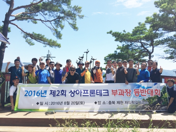 당사는 2016년 8월20일(토) 충북 제천 청풍호 자드락길 6코스에서 2016년 제2차 부과장 등반대회'를 실시하였습니다. 등반대회는 임원 및 부과장 직급을 대상으로 자드락길 6코스의 첫관문인 옥순대교를 시작으로 청풍호 전망대를 지나 지곡리 나루터까지 총9.9km의 괴곡성벽길 코스에서 진행되었으며 무더위 속에서도 참가자 전원이 무사히 산행을 마무리 하였습니다. 부과장 등반대회는 부과장협의회의 주관으로 회사의 핵심역량인 부과장 직급의 단합과 심신단련을 위하여 2015년을 시작으로 2016년부터 분기 단위로 진행되고 있습니다.