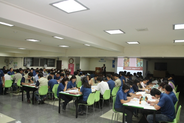당사는 2012년 9월 26일 전사원이 참석한 가운데 의사소통능력 향상과 관계갈등 예방 및 해소를 위한 직무 스트레스예방 교육을 실시하였습니다. 이번 교육에서는 전사원이 직접 MBTI 성격검사를 통해 자기이해와 타인과의 차이점을 확인한 후 이를 통하여 상대방과의 의사소통능력 향상과 관계갈등 예방 및 해소를 지원하고자 마련되었습니다.