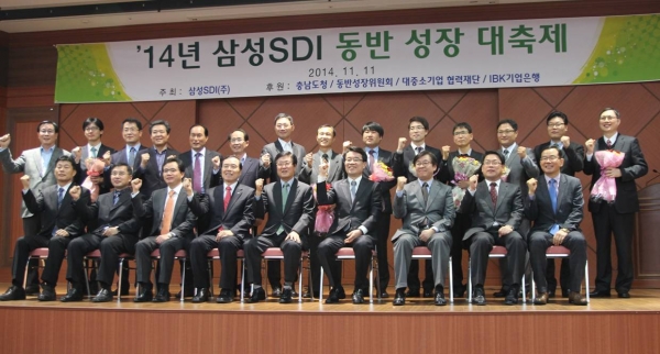 지난 11월 11일, 천안 충남북부상공회의소에서 열린 삼성SDI '동반성장 대축제' 에서 당사(이상원 사장)는 동반성장위원장상을 수상하였습니다. '동반성장 대축제'는 올해 18회째를 맞이하였으며 삼성SDI가 경영 혁신 성과를 공유하기 위하여 시작되었으며 박상진 삼성SDI사장과 안충영 동반성장위원장, 안희정 충남도지사 등이 참석하였습니다. 또한 행사장에 협력회사의 제품들을 전시하여 협력사들의 우수한 혁신 사례소개와 시상을 진행하였습니다.