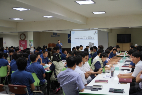 당사는 2012년 8월 10일 전사원이 참석한 가운데 2012년 하반기 경영설명회를 개최하였습니다.