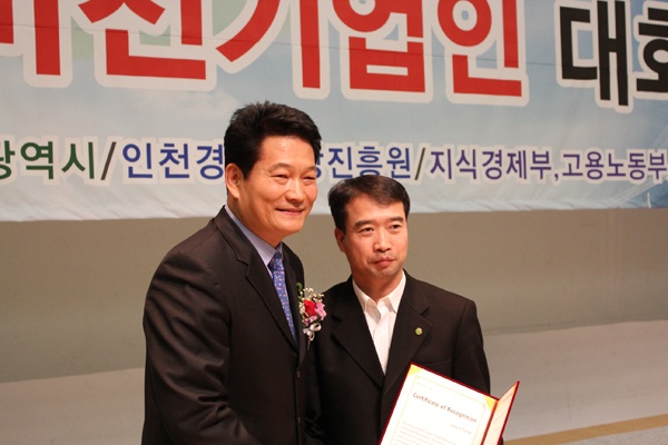 당사는 2011년 11월 14일 인천광역시에서 주관하는.. 미래의 신성장동력 창출을 위하여 기술력과 성장잠재력이 뛰어난 강한 인천의 선도기업인 "비전기업"에 선정되었습니다. ※비전기업 지원시책 1. 자금 및 보증 확대 - 경영안전자금 확대 및 이자 지원 (인천시에서 대출자금의 은행금리 3% 이자지원) - 신용보증재단, 신용보증기금, 기술보증기금을 통한 보증공급 확대 2. 기술/품질/지식재산 우선지원 - 비전기업의 국내외 규격인증, 디자인, 시제품개발, 지식재산권, 산학관 기술지원 협력체계 강화등 3. 수출 및 마케팅 우선지원 - 수출자금 및 시장개척 등 수출인프라 지원 4. 중소기업 지원기관 연계 필요분야 맞춤형 지원