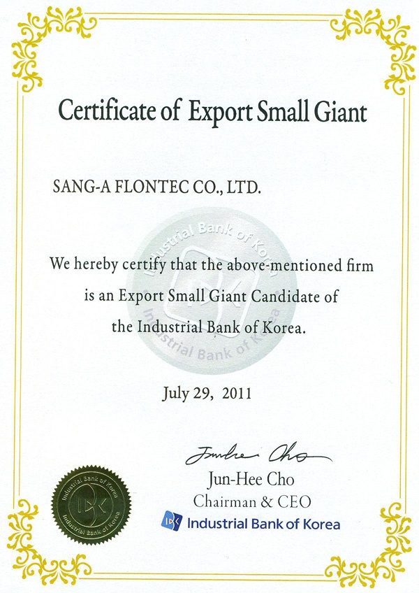 당사는 2011년 07월 29일 기업은행이 주관하는 '수출강소기업 Plus+ 500' 기업에 선정되었습니다.