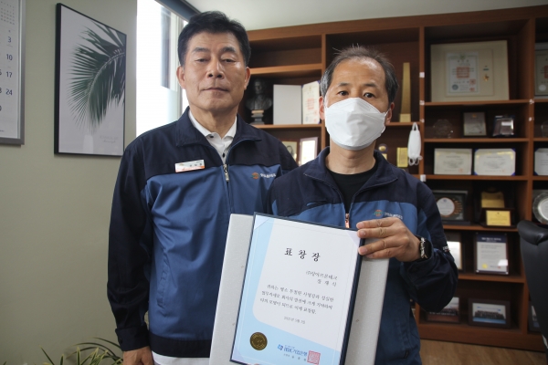 2021년 4월 27일(화), 기업은행에서 주관하는 2021년 모범근로자로 당사의 EM-용융압출파트 장재식 수석기사가 선정되어 '기업은행장상'을 수상하였습니다.