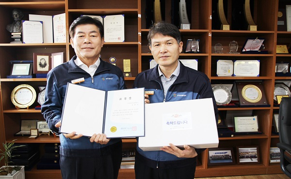 생산성 향상 등 회사 발전에 기여한 공로가 우수하여 모범근로자로 선정되었습니다.
