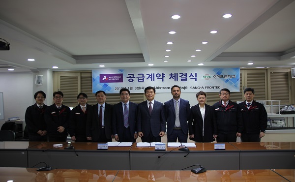 2019년 1월 3일(목), 당사 본사에서 유럽 알스트롬뭉쇼(AHLSTROM-MUNKSJO)와 ePTFE멤브레인 필터미디어 공급계약을 체결했습니다. 알스트롬뭉쇼는 연간 매출액 약 2조 8,000억원 규모로 미국, 일본, 핀란드, 스웨덴 등 14개국에 6,000여명의 직원을 고용하고 있으며, 자동차용과 산업용 필터 미디어 등 다양한 사업분야의 섬유로 만들어지는 산업재료를 생산하고 있는 글로벌 업체입니다. 공급계약 체결의 사업내용은 집진기용 및 가스터빈용 필터 미디어, 공조기용 헤파필터 미디어, 가정용(공기청정기, 진공청소기) 헤파필터미디어, 고온용(석탄화력 발전소와 소각장) 필터 미디어 등이며, 당사가 개발한 ePTFE멤브레인은 우수한 내열성과 내화학성으로 특정 물질의 고효율 여과를 필요로 하는 분야에서 그 가치를 인정받고 있기 때문에 최근 신성장사업을 중심으로 적용이 확대되고 있는 제품입니다. 현재 당사의 ePTFE멤브레인은 자동차의 헤드라이터와 모터의 VENT분야로 제품을 양산하고 있으며, IT와 섬유분야 등 다양한 사업의 시제품을 생산하고 있어 이번 계약 체결로 인하여 ePTFE멤브레인 성장에 가속을 더해 투자의 성과가 본격화될 것으로 기대하고 있습니다. |