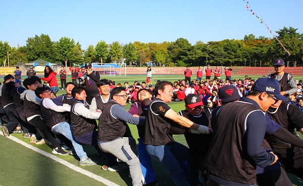 2018년 10월 12일(금), 인천 남동공단 근린공원 운동장에서 당사 임직원 약 500여명이 참석한 가운데 '제7회 한마음 체육대회'를 개최하였습니다. 이번 체육대회는 창의팀, 혁신팀, 미래팀, 창조팀, 도전팀, 화합팀 총 6개의 팀으로 구성되어 족구, 탁구, 골프, 배구 등 구기종목을 포함하여 명량운동회, 줄다리기, 연령별 릴레이, 각팀 응원전 등 다양한 행사로 진행되었습니다. 전 임직원의 단합된 모습으로 최선을 다하는 멋진 경기가 이어지며 종합우승은 도전팀이 선정되었습니다. 또한 행운권 추첨으로 UHD TV, 무선청소기, 전동 퀵보드 등 다양한 경품을 지급하며 행사에 즐거움과 행복을 더했습니다. 당사는 이번 체육대회를 통하여 임직원 모두가 단합된 '상아공동체 의식'을 보여주었으며, 앞으로도 지속적인 발전을 위한 최선의 노력을 다하도록 하겠습니다. |