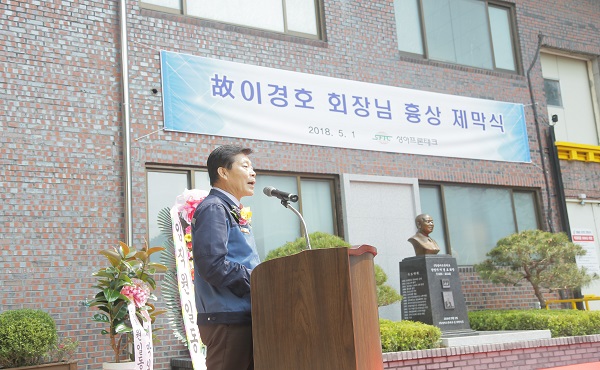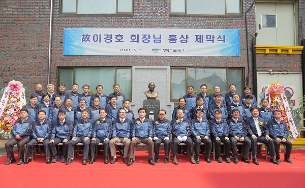 지난 4월 27칠(금), (주)상아프론테크 본사에서 故이경호 회장님 흉상 제막식 행사를 개최하였습니다. 이번 행사에는 당사 대표 임직원 40명을 비롯하여 협력업체 및 내빈 23명이 참석한 가운데, 故이경호 회장님을 기리는 추모사와 헌화로 진행되었습니다. 회장님은 국내 대부분 수입에 의존하고 있던 첨단 부품/소재 제품들을 국산화 개발에 성공하여 국가 경쟁력을 한층 더 진보시켰으며, 국가산업 및 기업발전에 기여한 높은 공로를 인정받아 상공부장관상, 내무부장관상, 철탑산업훈장 수훈의 영애를 안기도 하였습니다. 당사는 창업주의 경영 철학과 도전 정신을 기리고, 글로벌 초일류 첨단 부품/소재 기업으로 성장해 가도록 최선의 노력을 다하겠습니다. |
